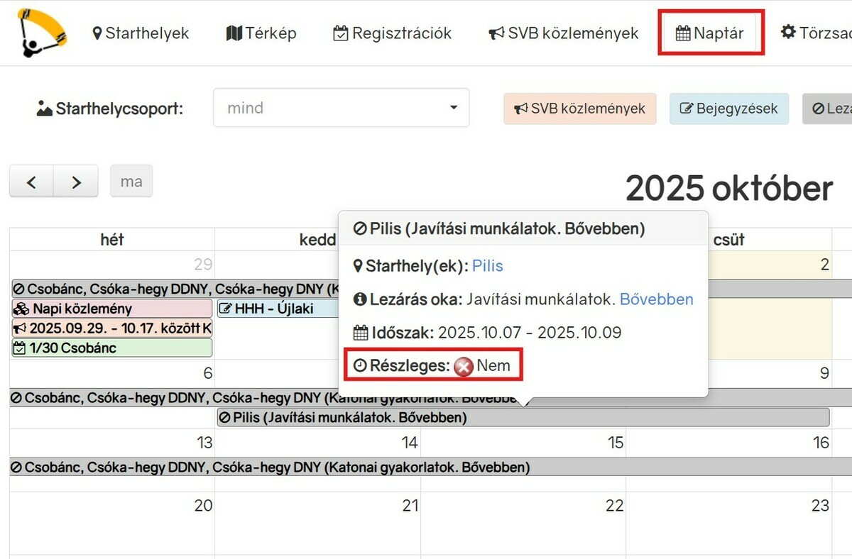 - megtekinthetők a nemrég elkészült Naptár modulban (sok egyéb - starthelyre is szűrhető - információval együtt)